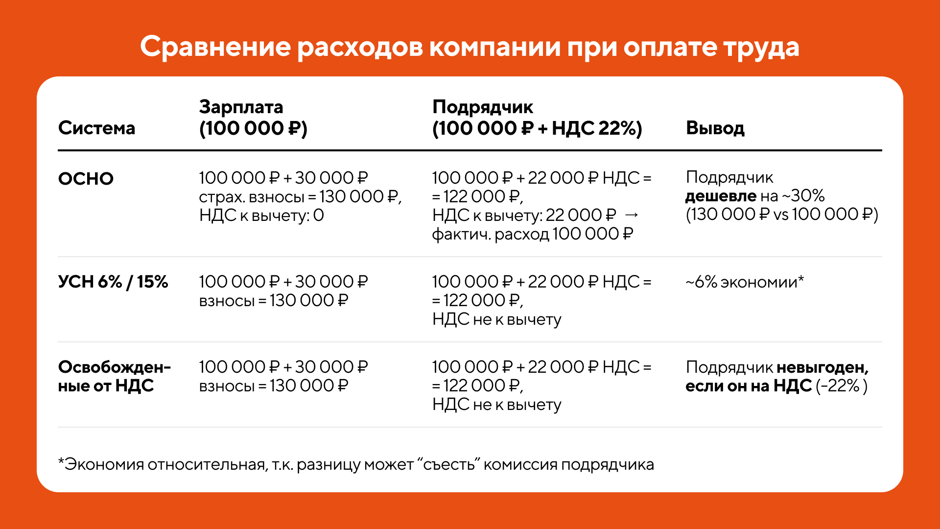 Сравнить финансовую часть. Как выглядит экономика: штат или подрядчик.