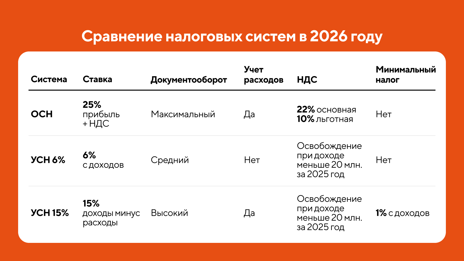 Оставим здесь сравнительную таблицу с системами налогообложения, чтобы вы могли подобрать для себя актуальную на 2026 год. Все официально, взяли данные с сайта nalog.ru.